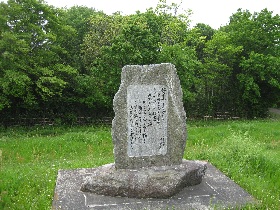 利根川の土手脇にある田山花袋の文学碑。 かつてこの周辺に松原があった。 小説「田舎教師」の一節の「松原遠く日は暮れて・・」 が刻まれている。