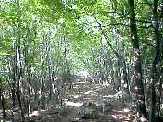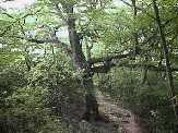 | まわりに雑木林が増えてくると、鳥首峠につきます。 鳥首峠からは、まだまだ登ります。 汗も滴り落ちてきますが、このあたりは標高約1000m、 吹き抜ける風もさわやかです。 まわりにも、ぶなやみずならなど、 標高の比較的高い場所に育つ木々が目立ってきます。 |