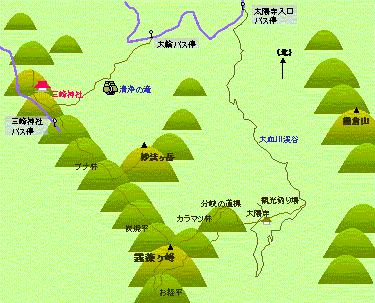 太陽寺へ降りるコースは尾根ぞいのコースとお経平を経由するコースの二つがあります。
