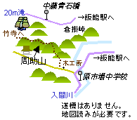 私は原市場中学校から西に1.5kmほど入ったお寺からヤブをよじ登りました。