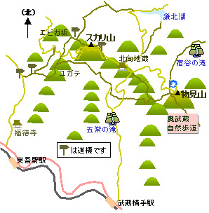 ふもとからはあまり目立たない山で、奥武蔵ハイキングコースから