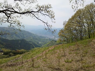 山頂の西側には登谷高原牧場の跡地があり秩父方面の展望が開けます。
