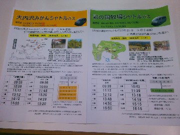 和紙の里内に、今回の実証運行のチラシが置いてありました。