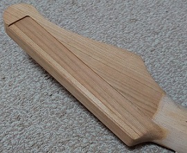 前の2本は強度と振動の伝達を両立するようにネック本体とテノンが噛み合うように2本の深いレールと溝を削り出して貼り合わせてましたが(ほぞ継ぎの一種?)、その加工には結構な時間を必要としていたので、今回はもっと簡略化した方法を用いてみました。
