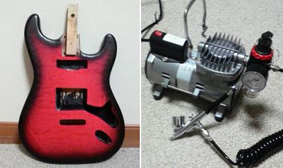 今回のためにコンプレッサーとエアブラシを買いました。ヤフオクで1万円くらいです。ってか、このギターに一体どんだけ金かけてるんだよって自分で突っ込みたくなります。