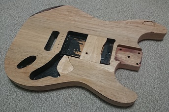 あとはザグッたボディの穴と、それを埋めたセン材との間にできた隙間を、セン材を削った屑粉をタイトボンドで練ったパテで埋めるなど、細かい部分の仕上げをする必要がありますが、それくらいなら残業を終えて帰宅した後でも少しづつ進められるでしょう。