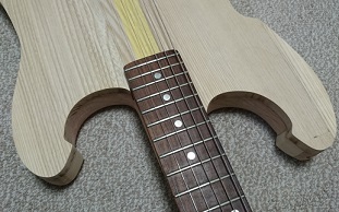 余談ですが、塗装してない状態で、しかも他のギターから外した死んだ弦での生音なので、当然全然まったく当てにならないのですが、乾いた感じで素早い「ペキン!!」とした立ち上がりに「モン!!」とした中域がブラ下がってるような、何とも不思議な音が出ました。