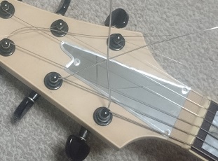 試しに純正のロッドカバーを宛がってみたところ、弦と干渉せずにナットとピッタリ付ける事ができました。なのでせっかく作ったのに勿体無いのですが、薄いミラー素材でロッドカバーを作り直します。