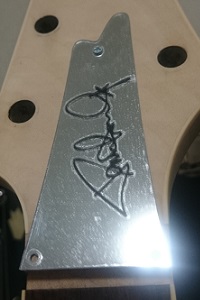 早速ボディにネジ穴を開けて取り付けてみましたが(もちろんセンター出ししましたよ)、大きさも形状もアイバニーズのサイトの画像とほとんど変わらなく、それなりに本物っぽく綺麗にできたので満足しています。