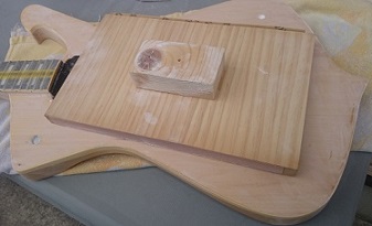 いやまぁ一応は本体の方も400番のペーパーでサンディングして生地を仕上げたので、指板などをマスキングすれば塗装工程に入れるんですけどね。