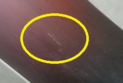 今回のリペアでも、やはり濃い着色で修理痕を誤魔化した方がいいでしょうね。元々そのためのリフィニッシュであり色の選定でしたし。