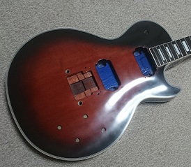 しかし、マホガニーブラウンは適当に重ね塗りして濃さを感覚的に調整したので、よく見ると、ボディとネックで色の濃さが微妙に違います。その辺は素人の手による自己満足な妥協に依存した作業なので仕方がりません。
