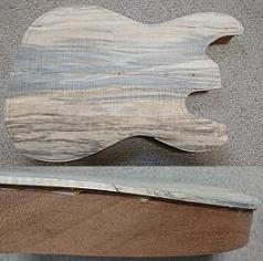 で、ザグった穴に約23mm厚のハードメイプルのブロックを埋め込むのですが、なぜ23mm厚かと言うと、家に転がってたちょうどいい大きさのハードメイプル材がたまたま23mm厚だったためで特に深い意味はありません。あまり厚くてもスプリングキャビティでガッツリ削っちゃいますしね。