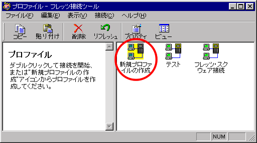 「フレッツ接続ツール」画面右枠の「新規プロファイルの作成」アイコンをダブルクリックしてください。