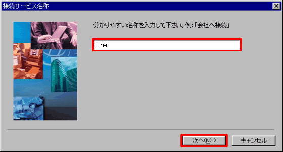テキストフィールドに作成する接続プロファイルの名称を入力し、【次へ】をクリックしてください。