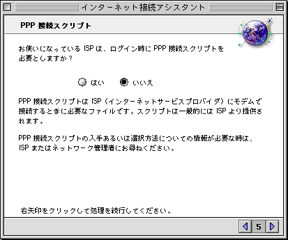 (8)「お使いになっているISPは、ログイン時にPPP接続スクリプトを必要としますか?」には、
