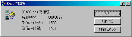 (3)接続が完了すると画面右下のタスクトレイにアイコンが表示されます。アイコンが表示されている間はインターネットに接続されています。また、アイコンをダブルクリックすると接続時間を表示するウィンドウが開きます。