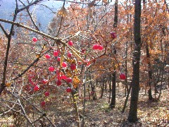 晩秋の頃は、落ち葉を踏みしめながら名残りの紅葉を楽しむことができます。