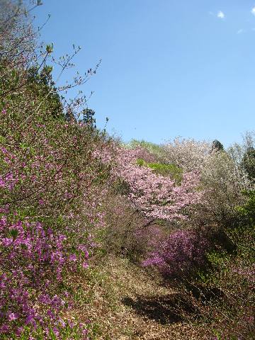 →山頂付近の桜とヤシオツツジ(2012年5月5日撮影)