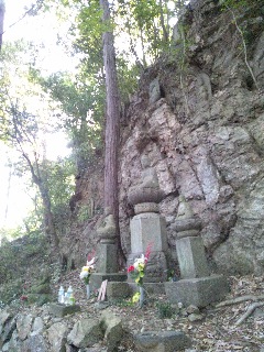 山頂近くのごつごつとした岩肌、徳川五大将軍綱吉ゆかりの十六羅漢像、