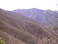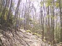 | 川又から、標高1200mくらいまでは道がはっきりしています。 この区間は雑木林が多く、 芽吹いたばかりの新緑を楽しみながら登ることができます。 しかし、標高1200m付近からはササが多くなり、 やがて道がササに埋もれるようになってきます。 私も、1400m付近で道を見失い、 ササヤブをかき分けながら登りました。 |