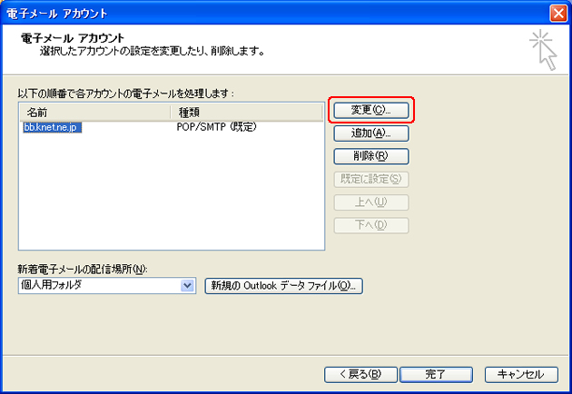 (3) アカウントの設定を選択し、「変更」をクリックします。