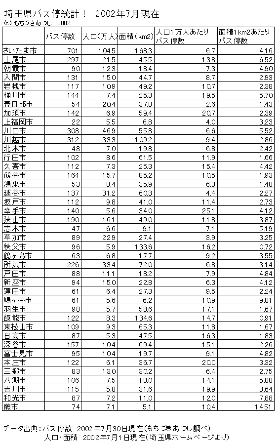 埼玉交通と自然情報ホーム > よもやま目次 > さいたまバス停統計